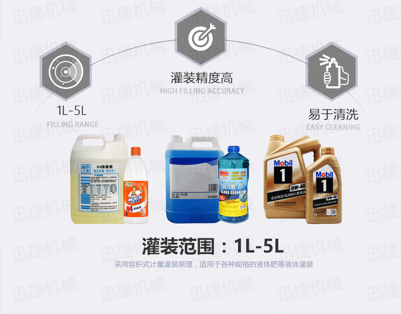 4、全自動洗手液液體灌裝機灌裝量調(diào)整方便,不需更換零配件,即可適用于不同規(guī)格的瓶子,調(diào)整方便,適應性強;