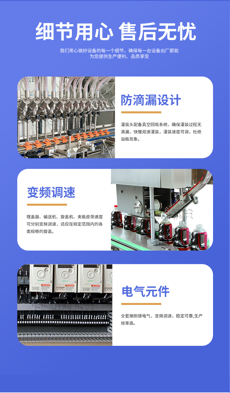 公司主要經(jīng)營兩大類產(chǎn)品:灌裝機和包裝機。其中灌裝機主要產(chǎn)品有:食用油灌裝機、液體灌裝機、膏體灌裝機、自動灌裝機、全自動灌裝機、辣椒醬灌裝機等;包裝機產(chǎn)品有:粉劑包裝機、顆粒包裝機、液體包裝機、自動包裝機、真空包裝機等。