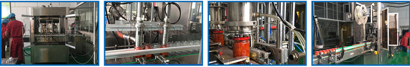 雙頭辣椒醬灌裝機(jī)1臺(tái)、四頭真空旋蓋機(jī)1臺(tái)、瓶口自動(dòng)套膜機(jī)1臺(tái)、瓶口自動(dòng)收縮機(jī)1臺(tái)、玻璃瓶貼標(biāo)機(jī)1臺(tái)